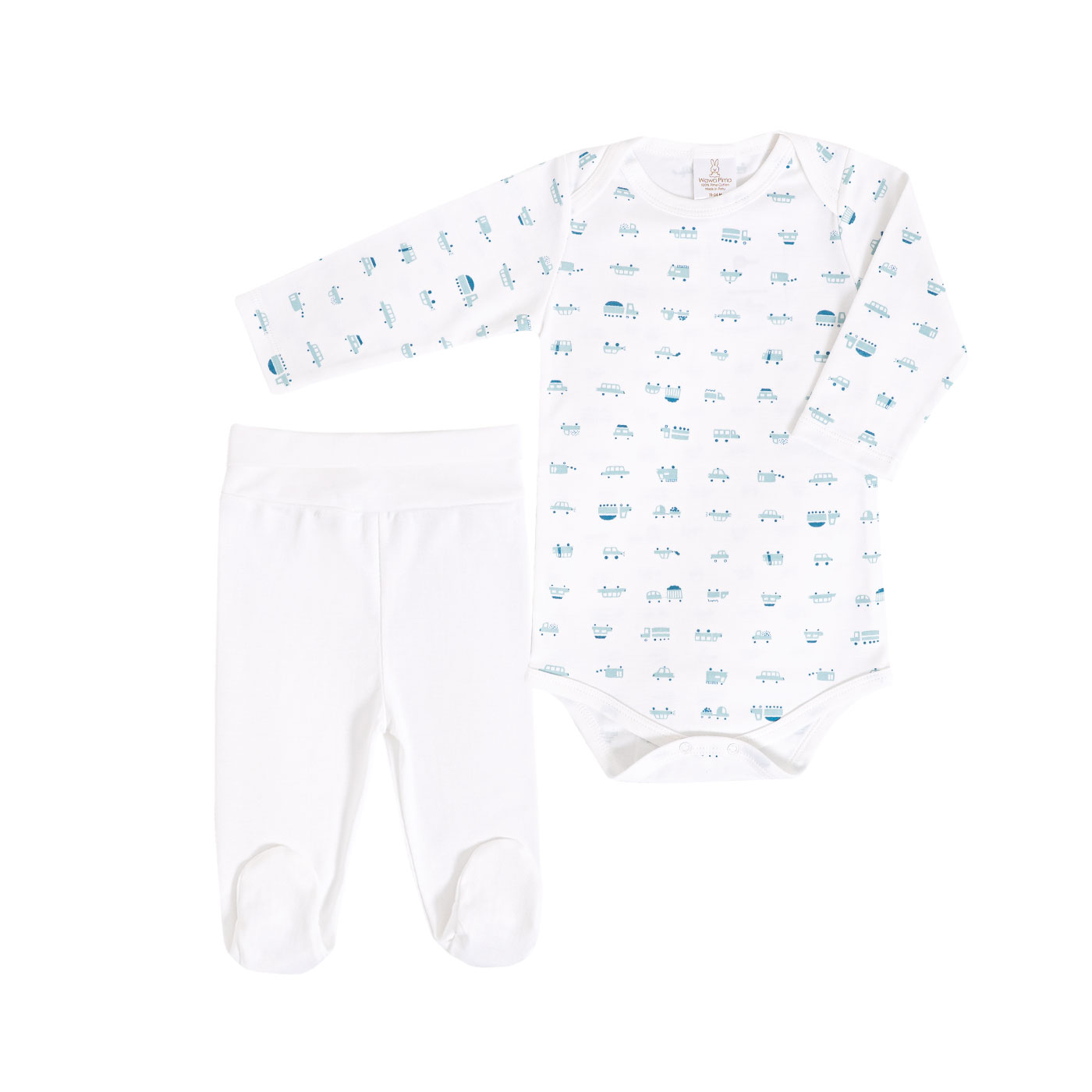 AJUAR DE 2 PZAS BEBÉ NIÑO DE ALGODÓN PIMA: SOBRE RUEDAS