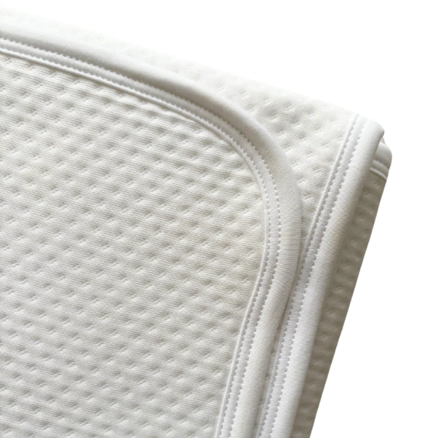 Nuestra manta jacquard para bebé son un básico infaltable de ropa de bebé color entero blanco, confeccionadas en algodón acolchado ultra suave que brinda calidez, suavidad y confort. Ligeras y hipoalergénicas, son perfectas para cubrir a tu bebé en su salida de la clínica, durante un paseo o en cualquier ocasión, convirtiéndose en la opción ideal para mamás que buscan una manta de algodón pima práctica, segura y abrigadora.