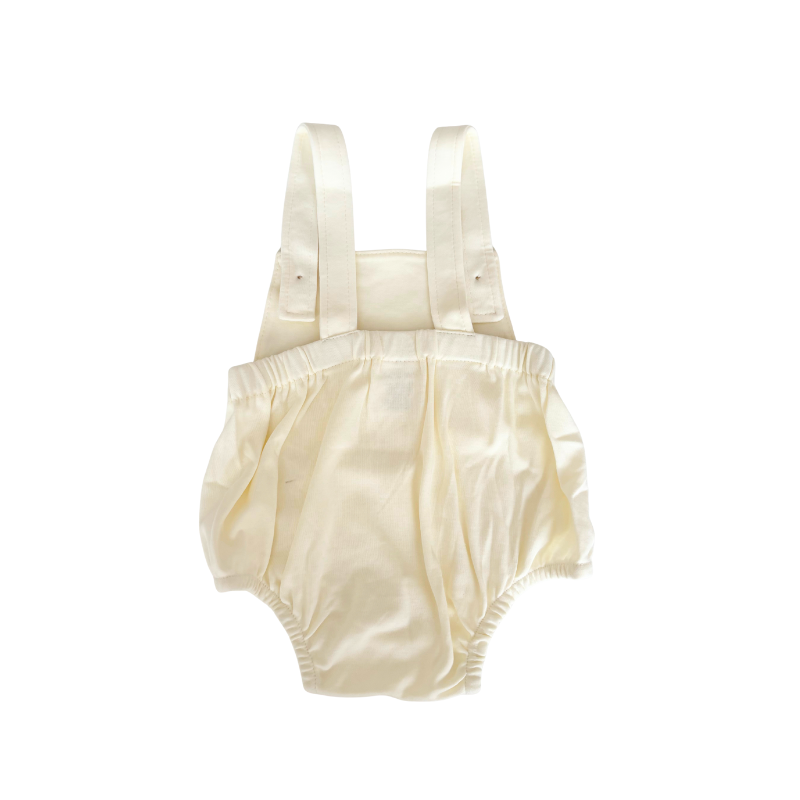 Coqueto overol para bebé en algodón pima color entero crema, diseñado para que tu bebé luzca fresco, cómodo y siempre protegido. Ideal para la piel sensible de los recién nacidos. Perfecto como ropa básica para bebé, parte del ajuar o como un regalo especial, ya que combina calidad premium, comodidad y estilo en una sola prenda.