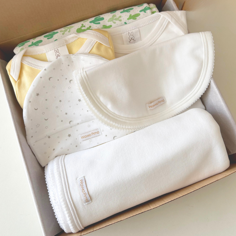 Pensado en colores neutros, básicos y 100% algodón pima , este pack es ideal cuando aún no se conoce el género del bebé o cuando se prefiere evitar los colores tradicionales. Es una opción elegante, útil y perfecta para regalar en un Baby Shower.