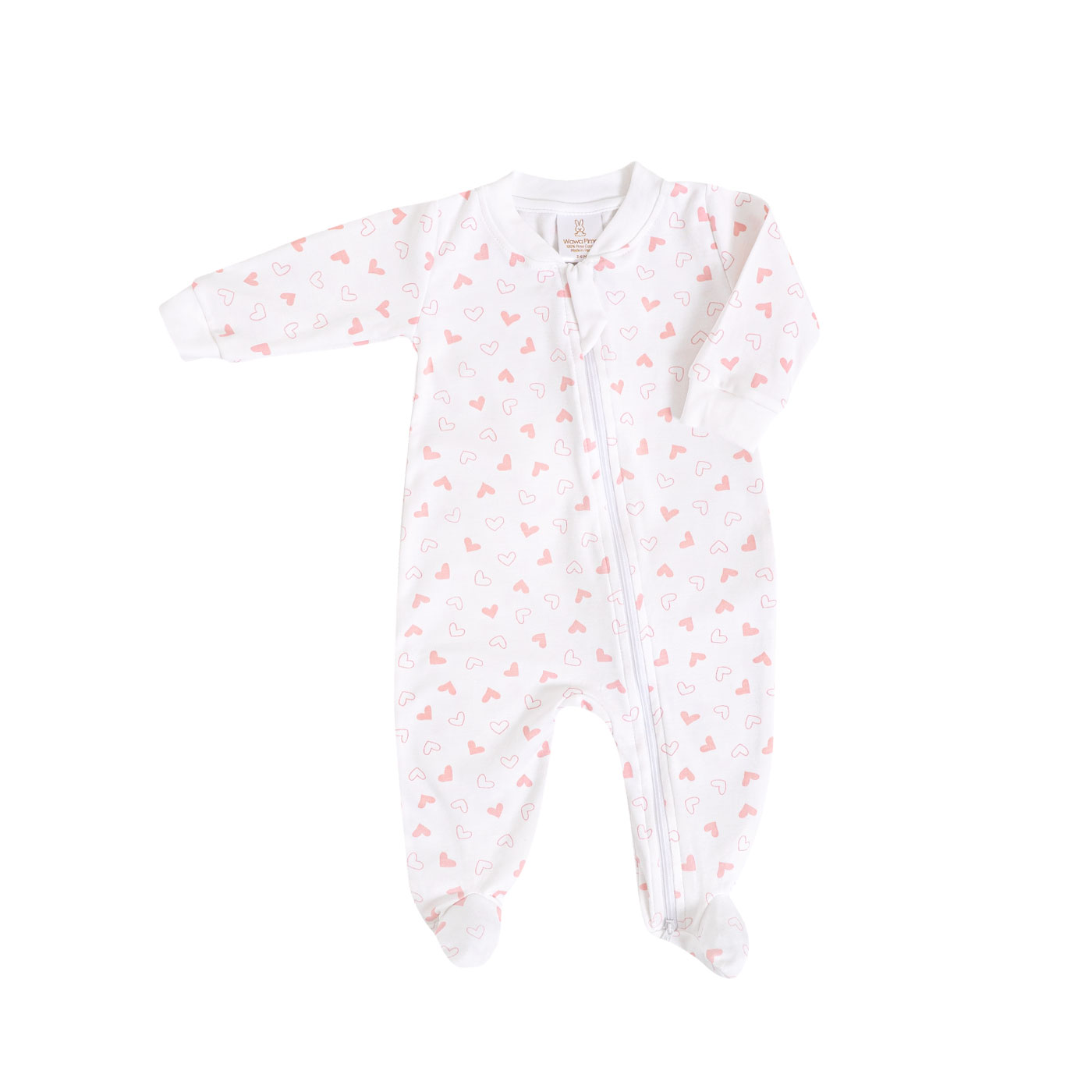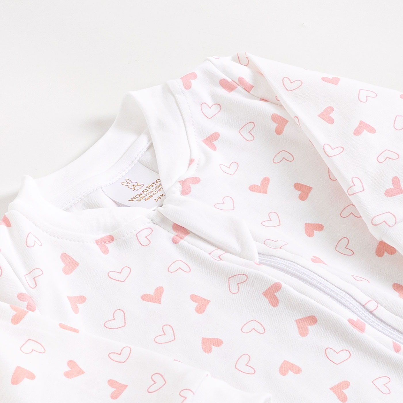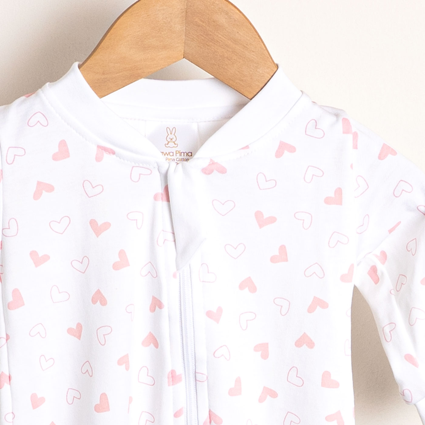 Enterizo y/o pijama para bebé con cierre y pie de la colección BABY LOVE con estampado de corazones 100% algodón pima. Diseñado para brindarle a tu bebé noches más tranquilas y días llenos de comodidad, este enterizo estampado combina suavidad, funcionalidad y calidad. Es hipoalergénico, fresco y transpirable. Su diseño con pie mantiene a tu bebé abrigado sin necesidad de medias, mientras que el cierre seguro no lastima su piel delicada. Además, incorpora doble cierre para facilitar cambios de pañal rápidos y prácticos en la noche o en cualquier momento del día, sin incomodar a tu bebé. Ideal para el descanso y el uso diario, este pijama permite que tu bebé esté cómodo, tranquilo y protegido en todo momento.