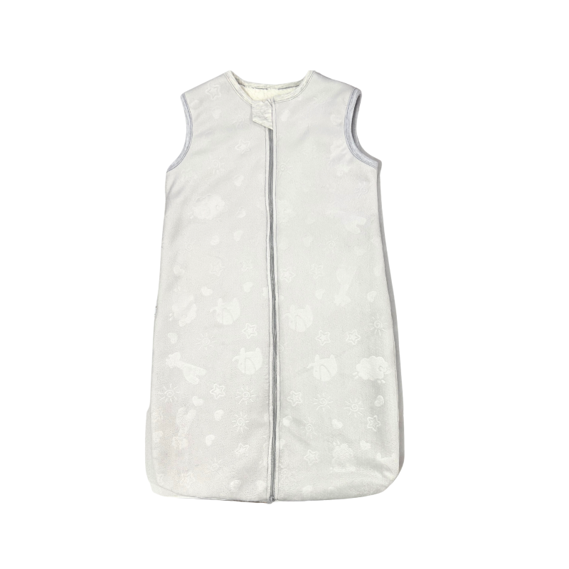 Lindo saquito de dormir en talla 0-6 meses color gris suave, confeccionado en plush-carnerito hipoalergénico. Brinda un sueño seguro a tu bebé. No importa que tanto se mueva, siempre estará abrigado durante las noches frías de invierno, perfecta para esta temporada. Contiene doble cierre, el cual ayuda para un cambio más práctico de pañal mientras tu bebé duerme. Además el cuadro de medidas que se adjunta te servirá para que puedas revisar si es la adecuada para tu bebé.