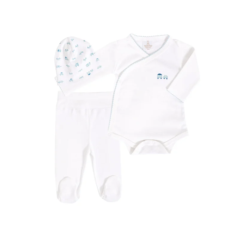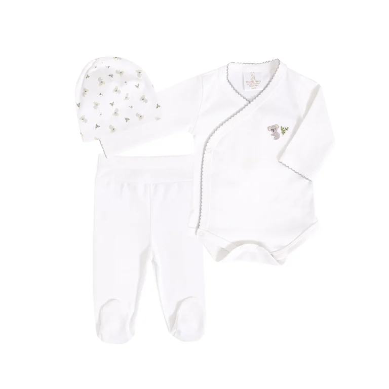 Dale a tu bebé la comodidad y el cuidado que merece con este set de 3 piezas para recién nacido y bebé de estampado de cactus, confeccionado en 100% algodón pima. Este set de ropa de bebé de algodón pima, incluye una chaqueta, un pantalón con pretina ancha y un gorro reversible, convirtiéndose en el ajuar perfecto para recién nacido o en un regalo especial para baby shower.
