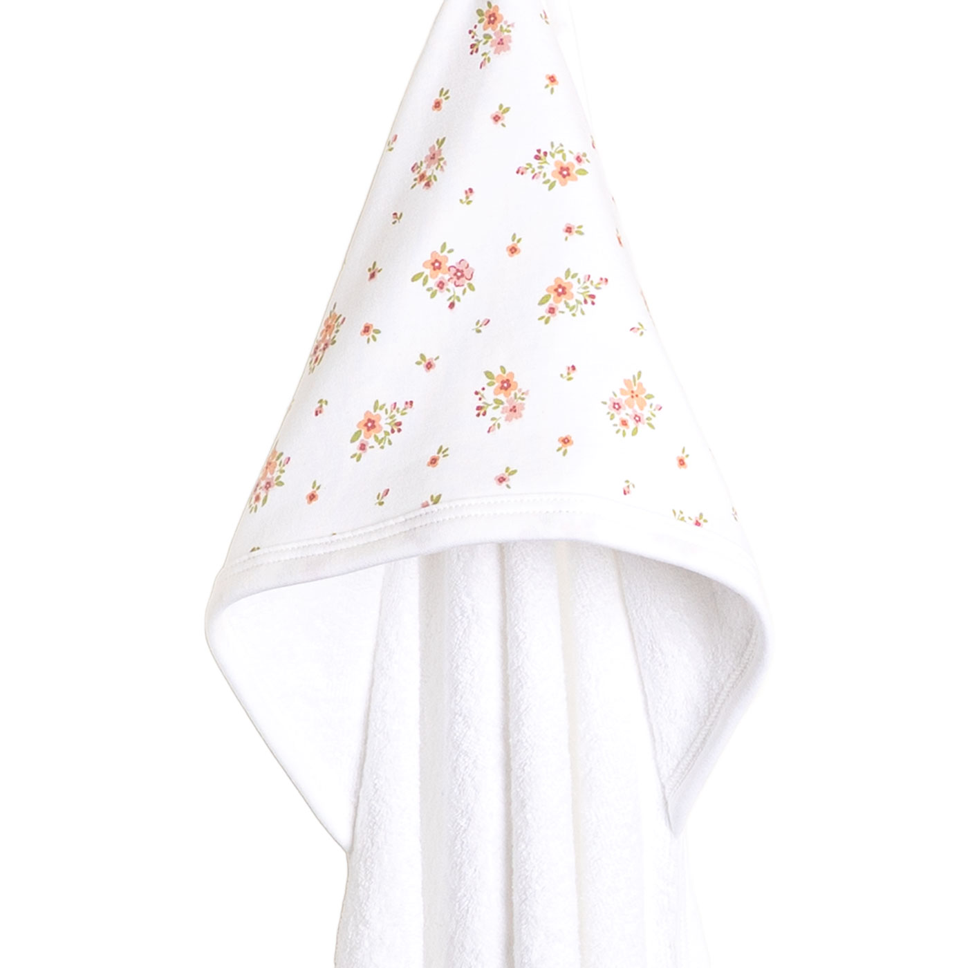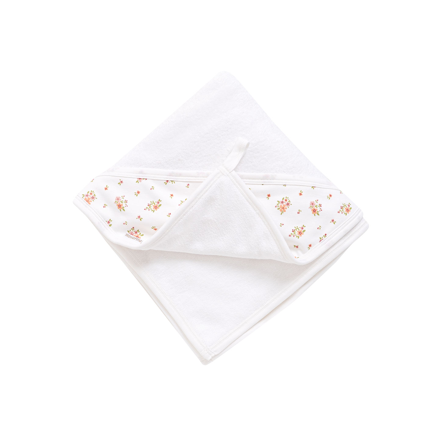 Toalla con capucha para bebé de la colección SWEET FLOWERS, confeccionada con exterior en algodón pima y felpa interna color blanco 100% algodón, ideal para cuidar la piel delicada de tu bebé después del baño. Su diseño de 1m x 1m brinda una cobertura completa, manteniendo a tu bebé abrigado, seco y cómodo. Es súper suave, absorbente y perfecta para el uso diario, convirtiéndose en un básico esencial dentro de la ropa para bebé. Gracias a la calidad del algodón pima, esta toalla ofrece una textura delicada, transpirable y duradera, ideal para bebés recién nacidos.